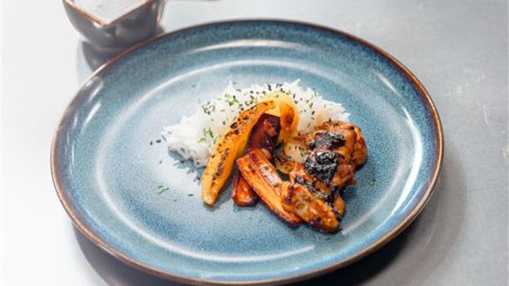 Pilko porkkana, paprika, sipuli, pari valkosipulin kynttä ja pieni määrä inkivääriä. Paista pannulla pienessä määrässä öljyä. Lisää lopuksi ruokalusikallinen riisiviinietikkaa ja soijakastiketta.