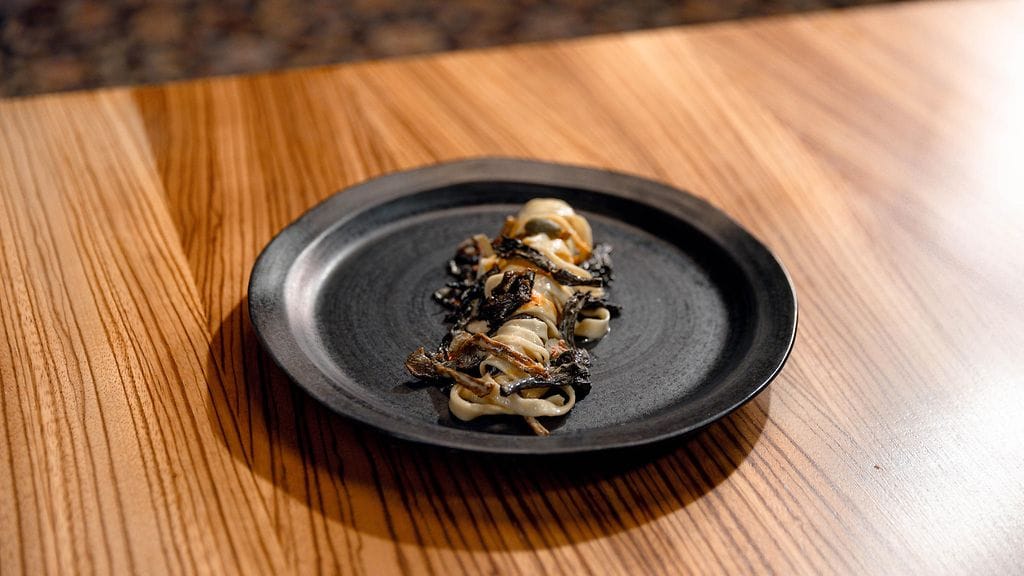 VALMISTA PASTA: Laita pastataikinan ainekset yleiskoneeseen taikinakoukulla ja vaivaa aineksia 10min kunnes taikina muodostuu. Ota taikina pois koneesta ja vaivaa vielä 1-2min käsin. Muotoile palloksi ja peitä kelmulla ja anna taikinan levätä vähintään 15min. Kun taikina on levännyt. Käytä pastakonetta ja aja taikina haluttuun muotoon esim. Fettucini.