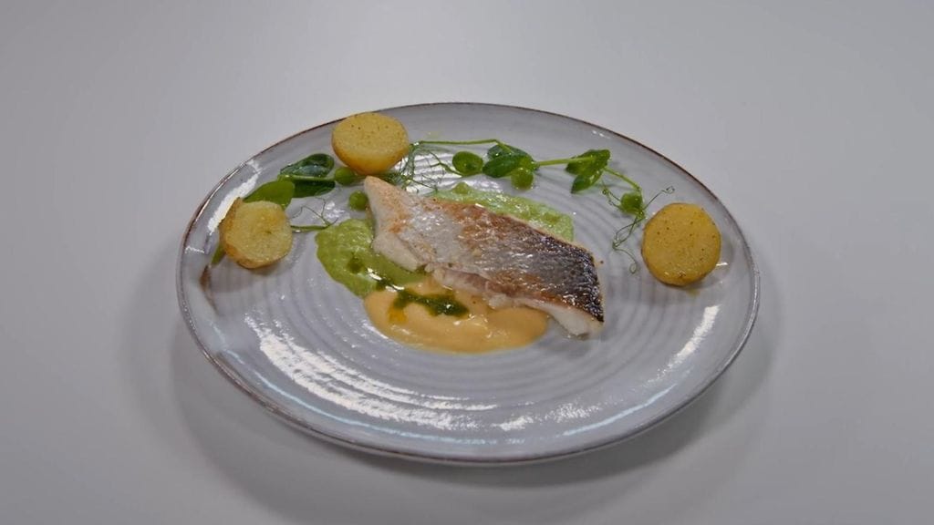 VALMISTUS: Esikeitä perunat suolatussa vedessä, kunnes ne ovat melkein kypsiä. Ota muutamia herneitä ja herneenversoja ja laita ne marinoitumaan oliiviöljyyn. Pilko valkosipulit ja keitä loput herneet kuohukerman ja valkosipulin kanssa.