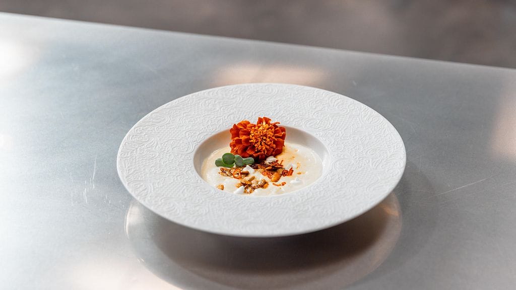 MYSKIKURPITSASOSE: Pilko myskikurpitsa lohkoiksi ja laita kiehumaan kanelitangon kanssa veteen. Anna kiehua, kunnes kurpitsa on kypsää. Soseuta blenderillä tai sauvasekoittimella tasaiseksi massaksi. Lisää 50 g voita ja 2 dl kuohukermaa. Siivilöi massa ja tee vaahto sifonilla.