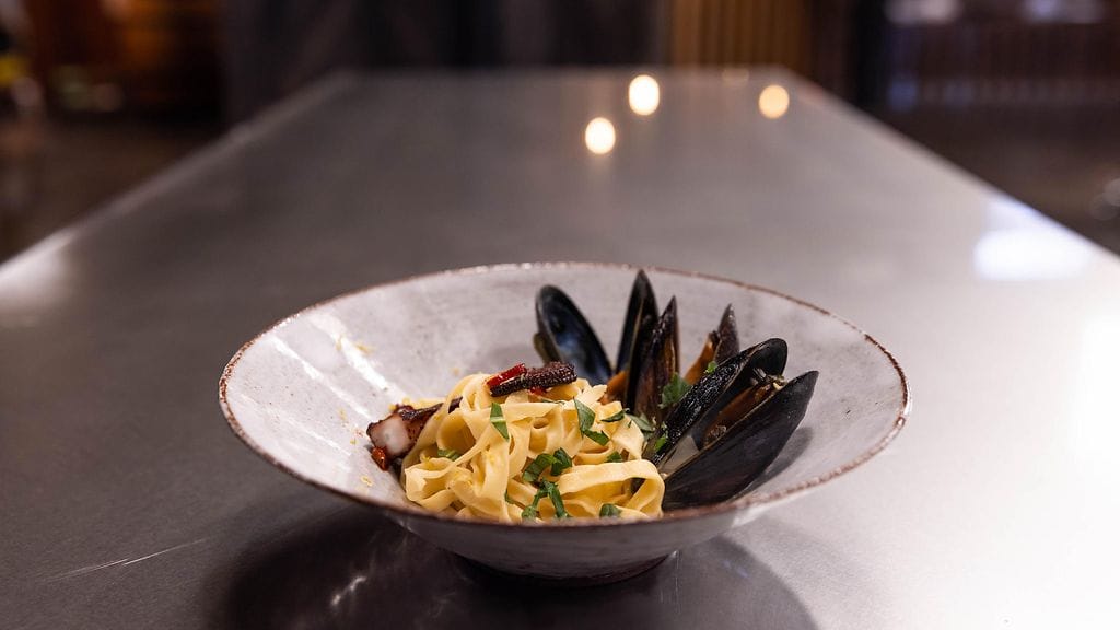 Mittaa jauhot ja kananmunat kulhoon, sekoita taikina palloksi, älä vaivaa liikaa, karkea kiinteä koostumus riittää. Kääri tiukkaan kelmuun ja laita jääkaappiin vetäytymään. Kun taikina vetäytynyt n. 30 min. käytä pastakonetta mankelointiin, taita levyjä muutaman kerran päällekkain niin saa paremman sitkon taikinaan. Mankeloi taikina tasolle 6 Marcaton pastakoneessa. Kääri levy rullalle ja leikkaa veitsellä n. 2 mm nauhoja. keitä pasta runsaasti suolatussa vedessä n. 1 min.