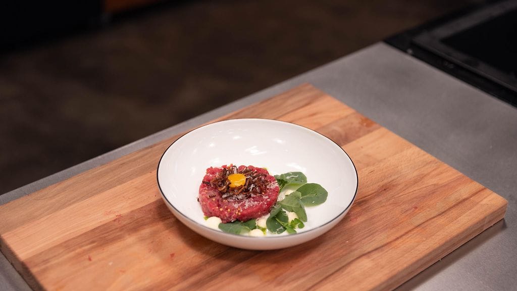 Leikkaa liha pieneksi, lisää suola, pippuri ja 1/3 dl parmesaania, sekoita massa