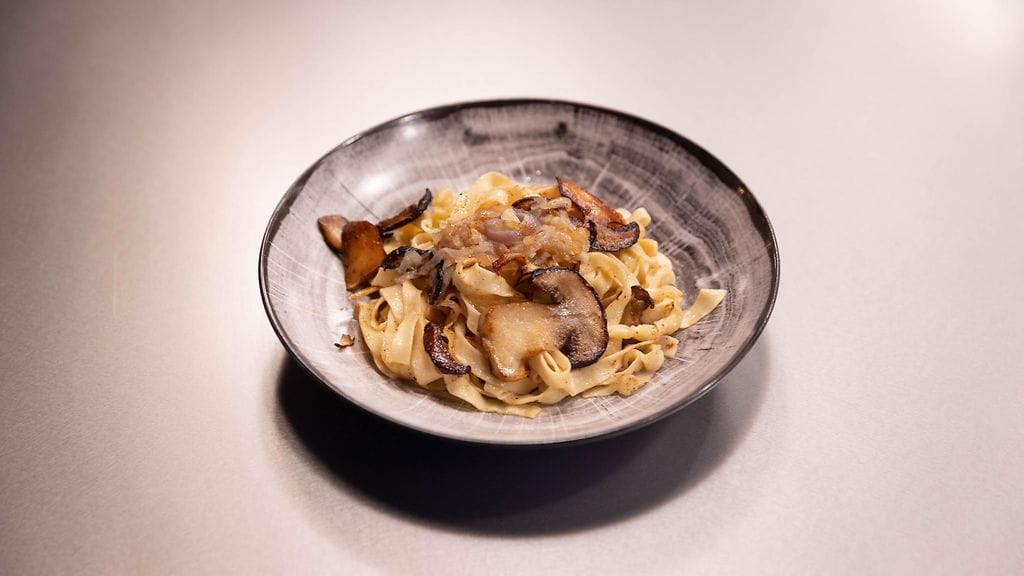 Pilko tatit, ruskita pannulla. Yhdistä pasta tattien kanssa.