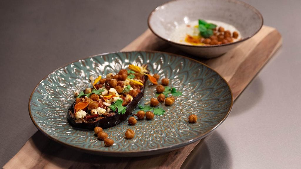 Huuhtele kikherneet, laita pellille ja mausta öljyllä, cayennepippurilla ja suolalla. Paahda uunissa 220 noin 25 min, jos herneet rupeavat räjähtelemään laita päälle leivinpaperi.