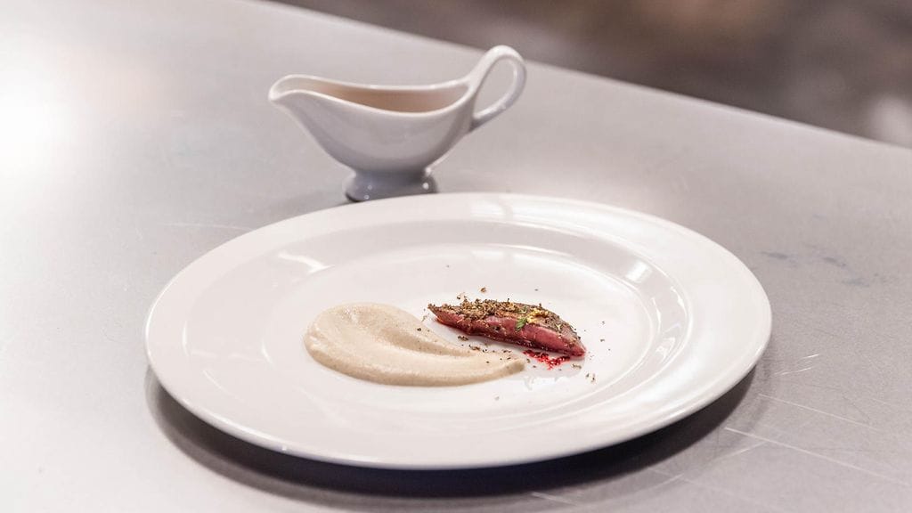 Hienonna shalotit ja lisää ne kahteen kattilaan. Freesaa voissa. Lisää toiseen kattilaan 1/2 fenkoli ja porkkanat. Paahda hetki ja lisää valkoviini. Lisää vesi ja keitä kasaan. Keitä maa-artisokkia suolavedessä.