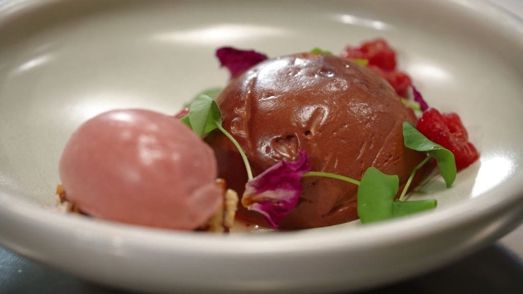 Mittaa tehosekoittimeen vadelmat, kaurajogurtti ja xantana. Mittaa kattilaan glukoosisiiraappi sekä kaurakerma ja kiehauta. Lisää tehosekoittimeen kaikki ja sekoita tasaiseksi. Siivilöi ja kaada jäätelökoneeseen.