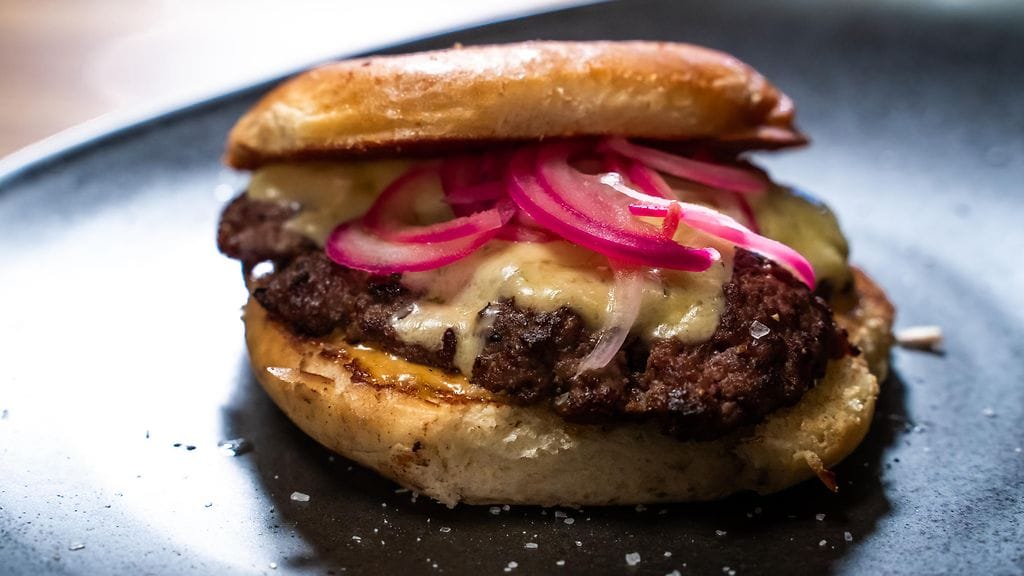 Valmista jauhelihapihvi. Muodosta jauhelista kaksi pihviä. Mausta suolalla ja pippurilla. Paista voissa pannulla molemmin puolin. Lisää juustosiivu pihvin päälle niin että se alkaa sulamaan.