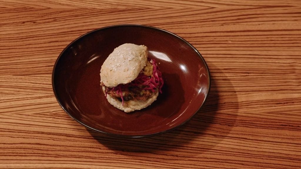 Valmista sämpylät. Sekoita hiiva ja suola kädenlämpöiseen veteen. Lisää jauhot ja kaurahiutaleet. Vaivaa pehmeäksi taikinaksi. Lisää öljy, suolaa ja kohota taikinaa liinan alla 20 minuuttia. Muotoile kohonneesta taikinasta 6 sämpylää ja nostata noin 10 minuuttia. Paista 220 asteisessa uunissa 12 - 15 minuuttia.