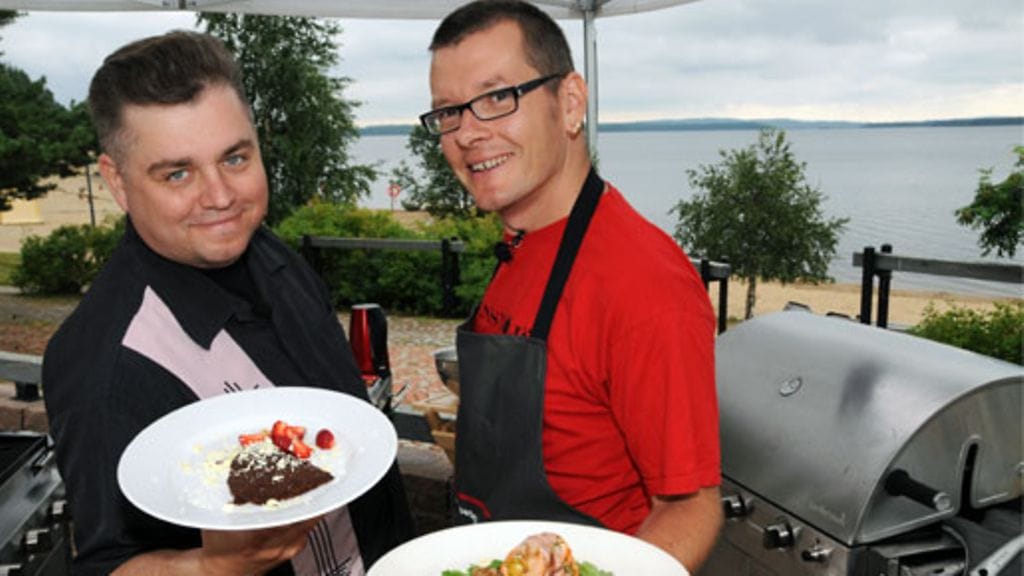 Lohko omenat ja kasta lohkot jauhetussa curryssa. Aseta omenalohko kunkin lohi-pekoniviipaleen päälle ja kietaise nyytiksi. Kiinnitä nyytit varrastikulla niin, että kuhunkin tikkuun tulee 3-5 palaa. Grillaa vartaat kuumalla grillillä nopeasti kypsiksi.
