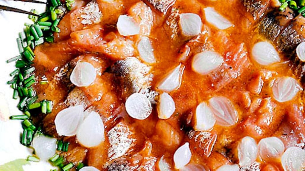 2. Sekoita marinadin ainekset ja kaada sillien päälle. Laita maustumaan jääkaappiin vähintään 3-4 tunniksi, mieluiten yli yön. Asettele tarjoiluvadille ja koristele hillosipuleilla sekä ruohosipulisilpulla.