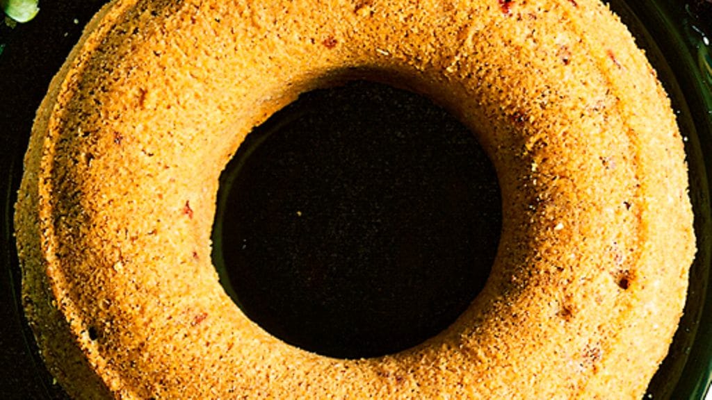 3. Kaada taikina vuokaan ja paista n. 30 minuuttia. Anna jäähtyä hetki, kumoa kakku sitten vuoasta.