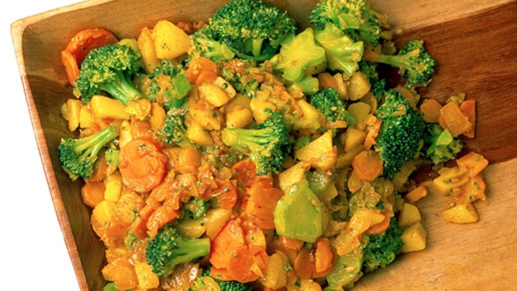 1. Kuori perunat ja porkkanat. Paloittele perunat, viipaloit porkkanat ja pieni parsakaali. Keitä ensin perunoita ja porkkanoita vedessä noin 10 minuuttia. Lisää parsakaali ja keitä vielä noin 4 minuuttia. Kaada vesi pois.