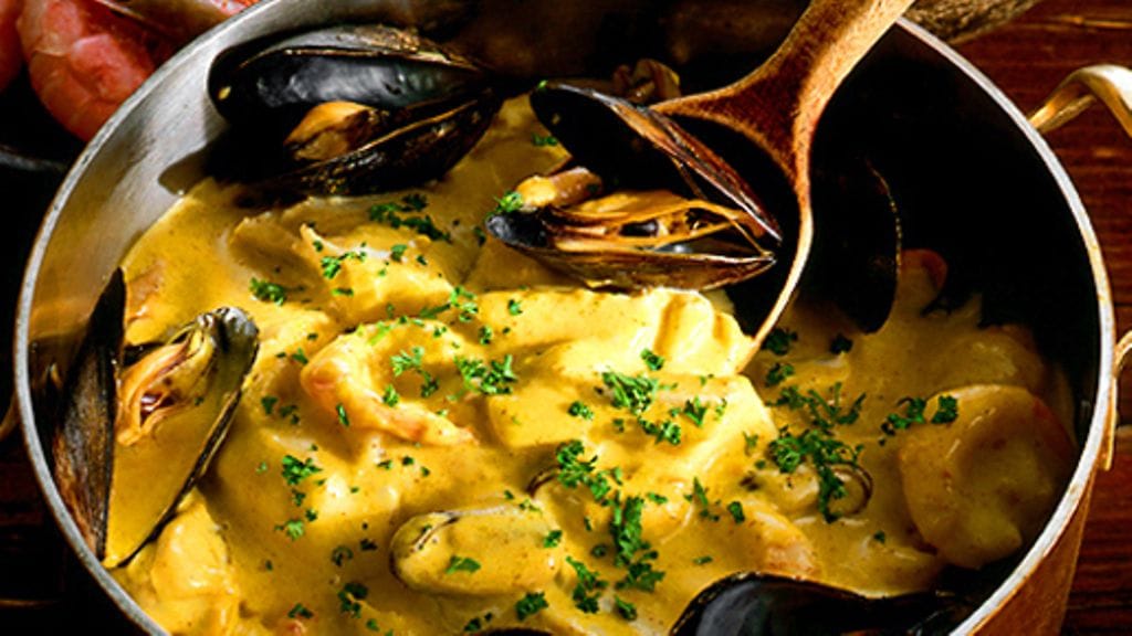 1. Sulata kala puoliksi jos käytät pakastekalaa. Paloittele viistoiksi viipaleiksi. Puhdista ja harjaa simpukat juoksevan kylmän veden alla. Heitä pois ne jotka ovat avoimia, eivätkä sulkeudu kun kopautat kuorta. Keitä simpukat viinissä 4 minuuttia kannen alla. Heitä pois ne simpukat jotka eivät ole avautuneet keittämisen aikana. Siivilöi ja säästä liemi.