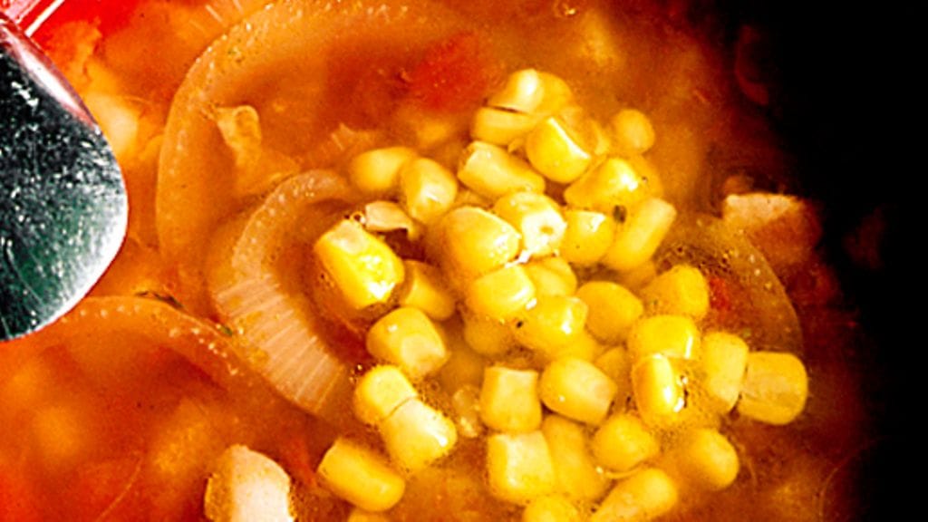 3. Lisää lopuksi maissit ja kuumenna keitto ennen tarjoilua.