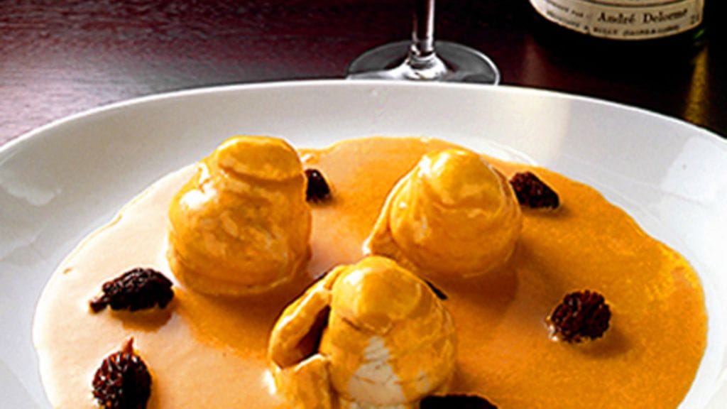 3 Mausta kala suolalla ja pippurilla. Kääri fileet rullalle ja laita ne tiiviisti vierekkäin voideltuun kasariin. Kaada päälle valkoviini ja kuumenna kiehuvaksi. Alenna lämpö ja anna poreilla varovasti, kunnes kala on kauttaaltaan valkoista. Tarjoile hummerikastikkeen ja huhtasienten kanssa.