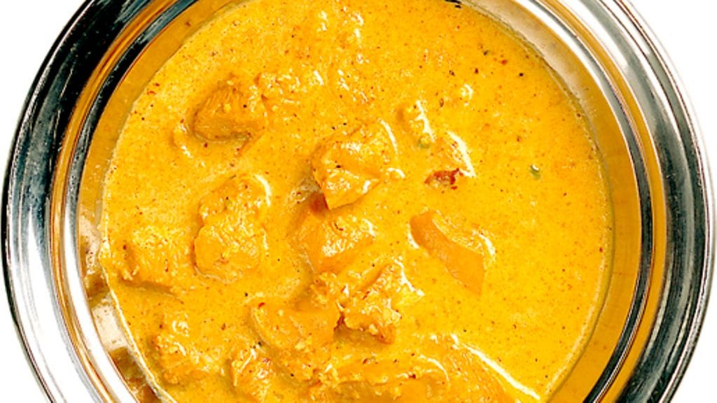 3. Lisää kerma ja keitä vielä viisi minuuttia. Varmista, että kana on läpikotaisin kypsää. Tarjoa riisin kera.