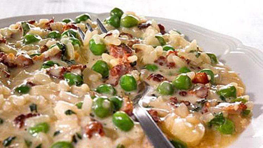 3. Lisää joukkoon risottoriisi. Kuullota kolmen minuutin ajan, jotta riisin huokonen pinta avautuu.