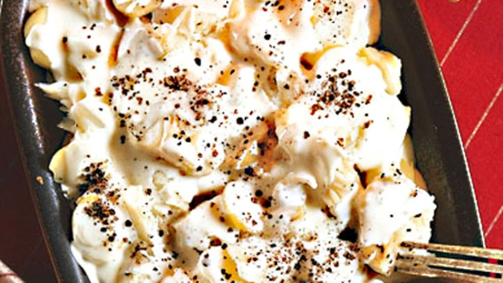 4. Kääntele perunat ja kalat kastikkeeseen. Ripottele päälle maustepippuria ja tarjoile hyvän sinapin kanssa.