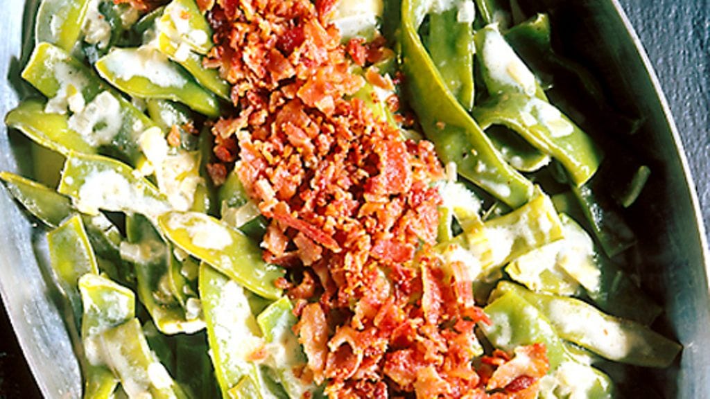 3. Paista pekonit rapeiksi ja tarjoile muhennoksen kanssa.