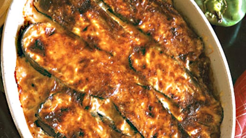 6. Lado munakoisoa ja lihaseosta vuorotellen uunivuokaan. Kaada kastike vuokaan, ripottele päälle juustoraastetta ja kypsennä uunissa n. 45 minuuttia.