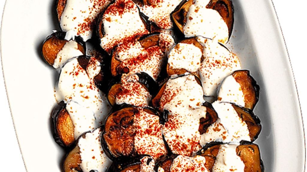 3. Kuori valkosipulinkynnet. Sekoita suola ja pippuri jogurttiin ja puserra joukkoon valkosipulinkynnet. Asettele munakoisoviipaleet tarjoiluvadille, kaada päälle jogurttiseos ja sirottele pinnalle paprikajauhetta ja juustokuminaa. Anna salaatin jäähtyä hetki jääkaapissa ennen tarjoilua.