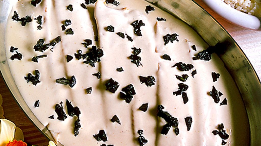 4. Siivilöi liemi ja keitä kokoon 1,5 desilitraksi. Vaivaa voi ja jauho yhteen ja suurusta seoksella kalaliemi. Lisää kokoonkeitetty kerma, mausta. Kuumenna ja levitä kastike kalafileiden päälle.