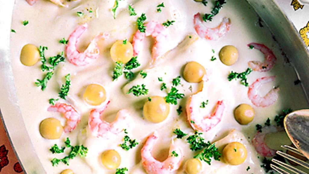 3. Keitä fondia kokoon, niin että jäljellä on 1 dl. Keitä myös kermaa kokoon ja sekoita se fondiin. Mausta ja kaada kastike kalafileiden päälle. Koristele voissa paistetuilla herkkusienillä, kuorituilla katkaravuilla ja persiljalla.