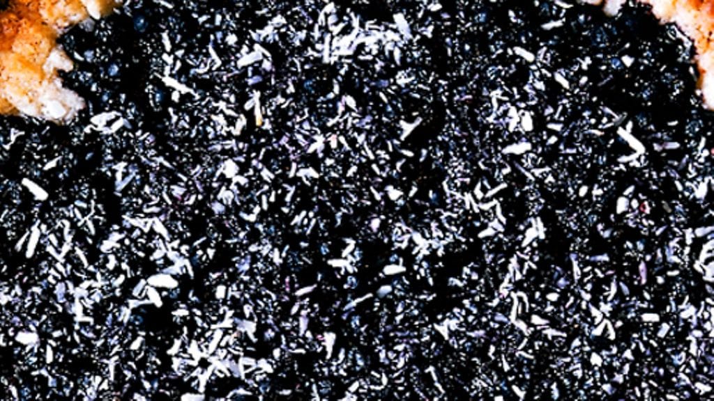 3. Sirottele karkeasti raastettu mantelimassa piiraspohjalle, levitä marjat päälle ja sirota pinnalle kookoshiutaleet. Paista uunin keskitasolla 25 minuuttia.