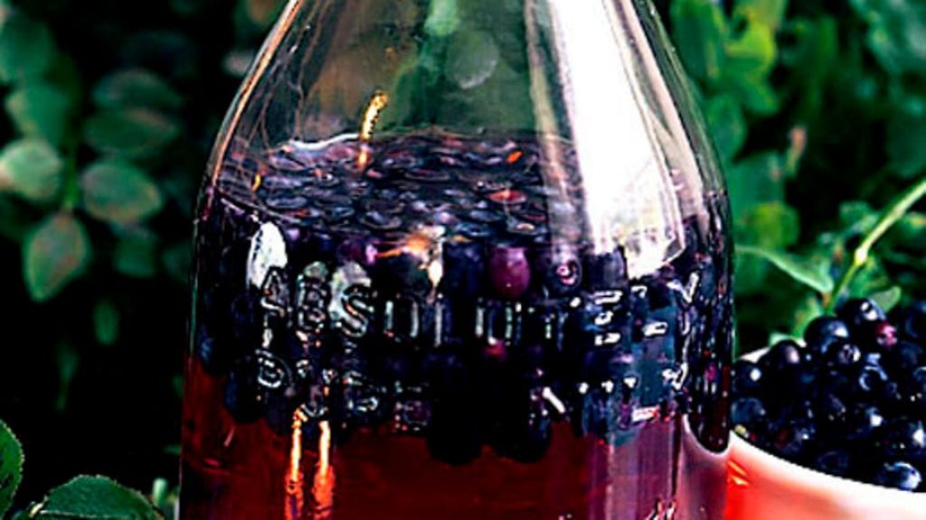 1. Laita mustikat lasipurkkiin. Kaada päälle viina, niin että se peittää marjat. Sulje hyvin ja anna seistä muutamia viikkoja.