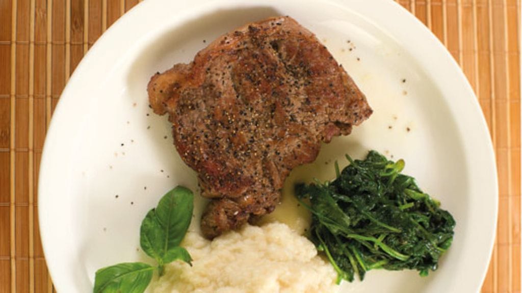 2. Mausta liha mustapippurilla. Ruskista ainakin 2 minuuttia kummaltakin puolelta. Nosta sivuun lepäämään.