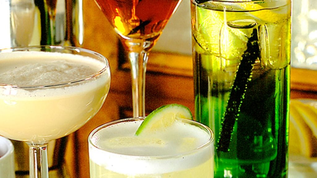 2. Gimlet: Sekoita limettimehu, gini ja jäät. Siivilöi ja korista limettiviipaleella.