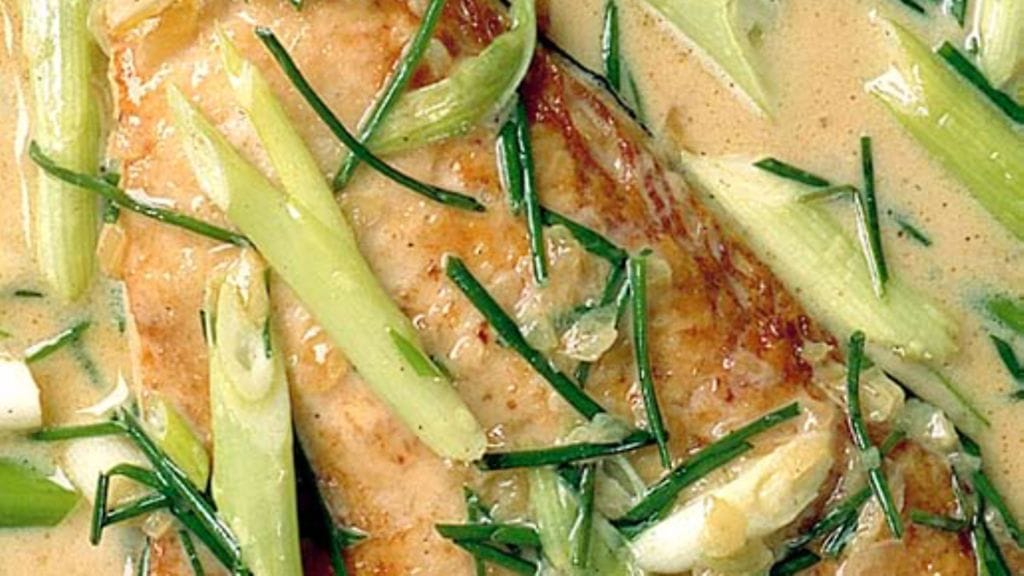 1. Mausta kalat suolalla ja rouhitulla valkopippurilla ja kääntele ne vehnäjauhoissa. Hienonna sipuli ja ruohosipuli sekoittamatta niitä. Paista nieriät keskilämmöllä ruskistuneessa voissa 3-4 minuuttia kummaltakin puolelta. Laita kalat sivuun, mutta pidä ne lämpiminä.