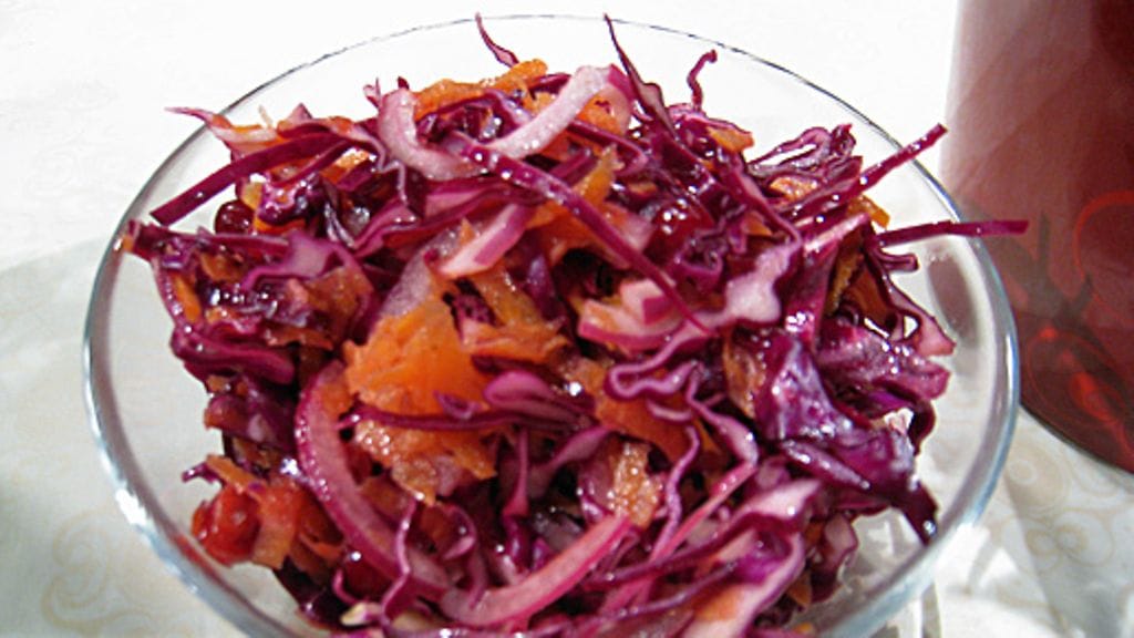 Suikaloi kaali ja sipuli ohuiksi suikaleiksi. Raasta porkkana ja yhdistä raaste sipulin ja kaalin kanssa kulhossa. Lisää mukaan puolukat. Kiehauta sokeri, etikka ja öljy ja kaada seos kaalisalaatin joukkoon. Mausta salaatti lopuksi suolalla ja pippurilla.