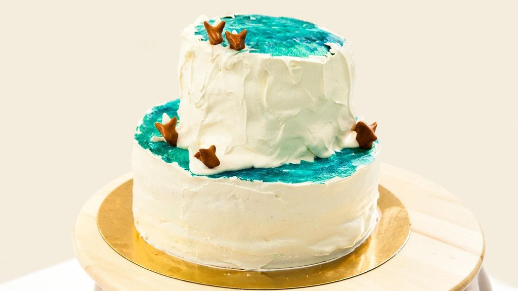 Nosta kakku kylmästä. Laita lautasen keskelle tilkka vodkaa. Laita lautasen reunoille cocktailtikulla sinistä, mustaa ja keltaista elintarvikeväriä. Sekoita väreistä haluamaasi sävyä, käytä vodkaa kuten vettä vesiväreillä maalattaessa. Vodka haihtuu pois kakun pinnalta.