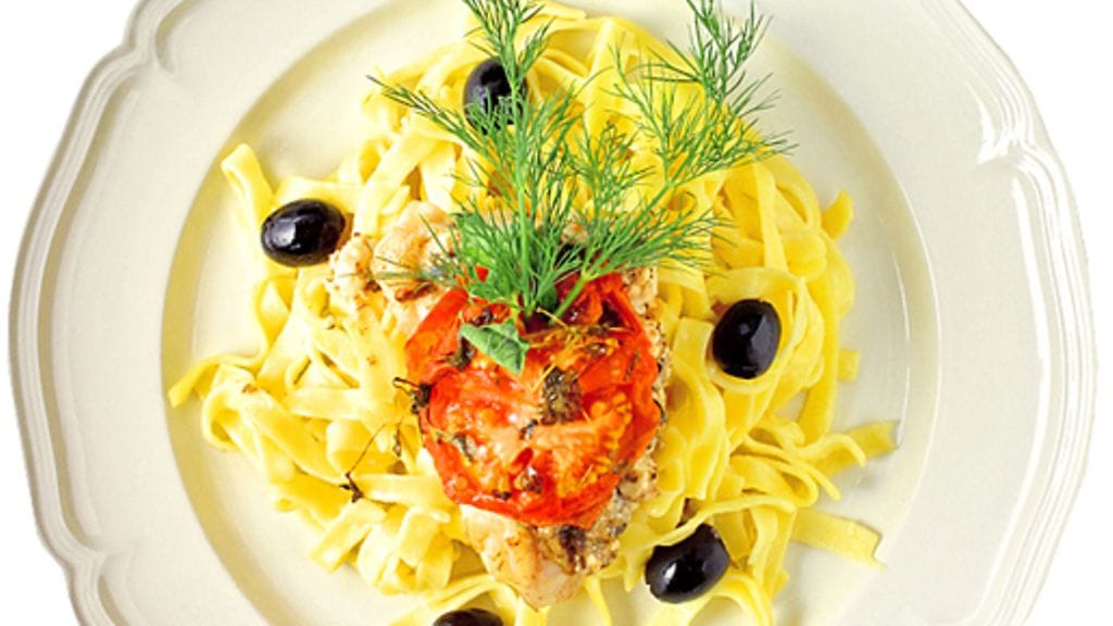 2. Kuumenna uunin lämpötila 225 asteeseen. Laita valkosipulinkynnet kuorineen uuninkestävään astiaan. Paahda niitä uunissa kunnes ne ovat saaneet kauniin värin, muutama minuutti riittää. Anna valkosipulien jäähtyä. Laita kalafileet voideltuun, uuninkestävään vuokaan. Sekoita oliivit, kaprikset ja voi tehosekoittimessa. Lisää fetajuusto ja levitä seos kaloille. Paista kalavuokaa uunissa 15 minuuttia. Tarkista, että kalat ovat läpikotaisin valkeita, paista muuten vielä hetki.
