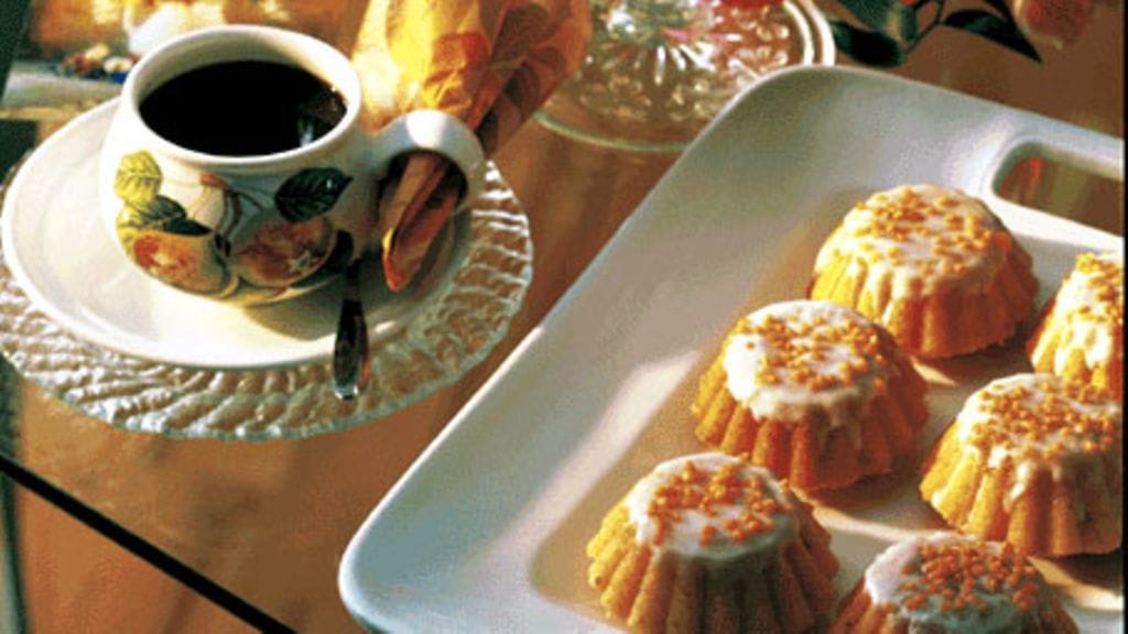 Kuorrutus: Sekoita kuorrutuksen aineista tasainen tahna ja kuorruta sillä jäähtyneet muffinssit. Koristele nonparelleilla tai strösselillä.
