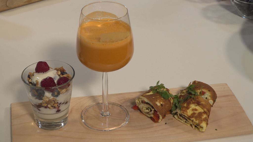 Huomenta Suomen Duunikunto-ohjelmasarjan reseptillä valmistat itse terveellistä mehua. Monissa kaupassa myytävissä tuoremehuissa on paljon lisättyä sokeria. Itse valmistetusta mehusta saat terveellisemmän eikä siihen tarvitse lisätä mitään turhaa. Nauti esimerkiksi aamupalaksi tämä maukas vitamiinipommi!