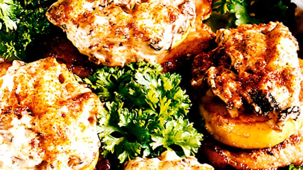 2. Paista omenaviipaleet lähes pehmeiksi voissa ja ripota päälle vähän currya. Nosta viipaleet kyljysten päälle.