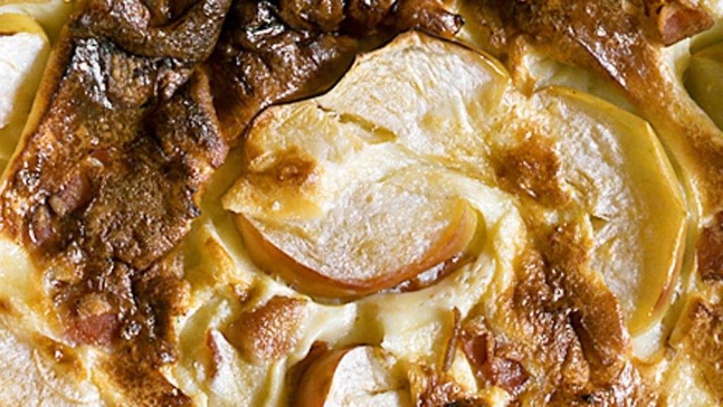 1. Kuumenna uuni 250 asteeseen. Voitele suuri paistinpannu (uuninkestävällä kahvalla) tai uunipannu. Paista pekonit ja laita vuokaan omenalohkojen kera.