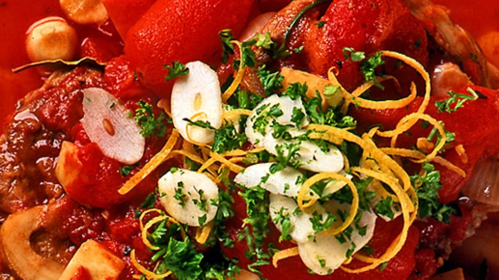 1.Jauhota vasikanpotkaviipaleet vehnäjauhossa. Ruskista lihat öljyssä pienissä erissä joko suoraan padassa tai paistinpannussa. Kuori ja silppua sipuli, valkosipuli ja porkkanat, lisää pataan, kun kaikki lihat on ruskistettu. Anna kaiken paistua yhdessä, varo polttamasta. Ripota päälle 1 rkl jauhoa ja lisää sitten viini, tomaattimurska ja tomaattipyree. Määrät riippuvat lihan määrästä ja padan tilavuudesta, mutta "märkien" ainesten pitäisi peittää lihat. Jos on tarpeen, jatka vedellä.