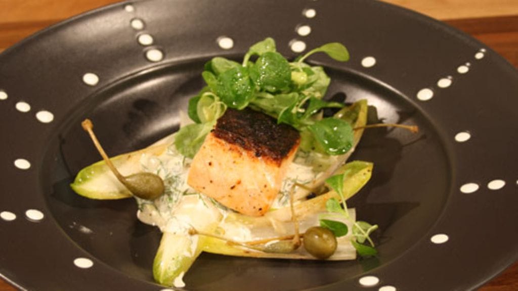 Kuumenna pannu erittäin kuumaksi ja paahda lohipaloja nahkapuoli pannua vasten, kunnes valkuaisnesteet nousevat pintaan. Käännä palat hetkeksi toisinpäin. Lohi on parhaimmillaan, kun se on sisältä hiukan punertava.