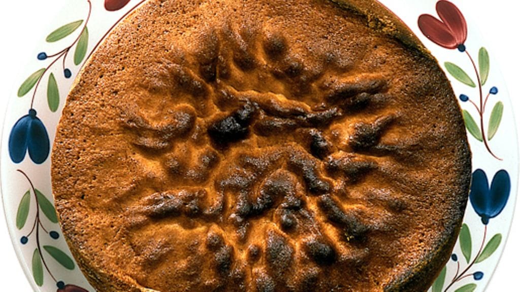3. Kaada taikina vuokaan ja upota päärynälohkot taikinaan. Poista 30-40 minuuttia. Upottamalla tikun kakkuun näet, milloin kakku on kypsä. Tikun tulee olla aivan kuiva - jos siinä on kosteutta, anna kakun paistua pari minuuttia ja kokeile sitten uudelleen. Ripottele punssia kakulle ja anna kakun jäähtyä ennen kuin irrotat sen vuoasta.