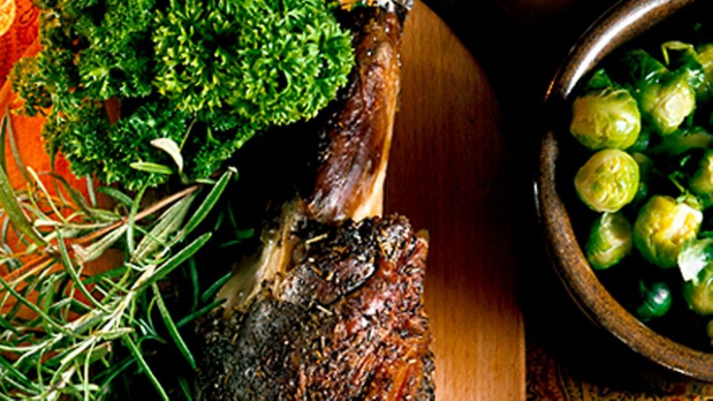 1. Kuumenna uuni 175 asteeseen. Hiero paistiin suola, pippuri ja puristettu valkosipuli. Nosta se ritilälle uunipannun päälle. Sirottele pinnalle yrtit ja paina lihaan paistomittari.