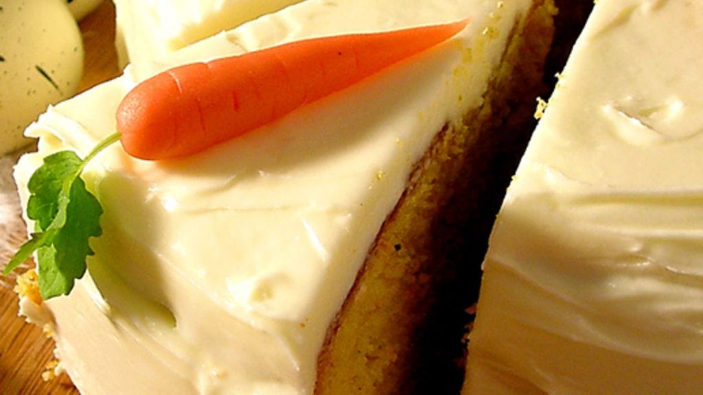 2. Yhdistä jauhot, sooda, suola ja halutessasi kaneli. Lisää sokeriseos. Lisää porkkanaraaste ja pähkinät. Täytä voideltu ja jauhotettu vuoka taikinalla. Paista 1 tunti uunissa. Anna kakun levätä hetki vuoassa ennen sen kumoamista. Anna sen jäähtyä täysin. Näin pitkälle voit valmistella kakun etukäteen.