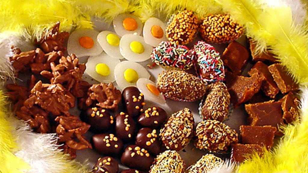 1. Pääsiäispusut: Sekoita sokeri, vesi ja etikka kattilassa ja keitä 8-10 minuuttia. Tipauta tippa seosta lautaselle ja kokeile, venyykö sokeri lankana sormien välissä, kun otat seosta kahden sormen väliin ja painat sormia yhteen ja erikseen. Silloin se on valmista. Kaada seos kattilasta syvälle lautaselle. Mausta sitruunaesanssilla. Sekoita varovasti, kunnes massa muuttuu valkoiseksi. Tiputtele silloin nopeasti teelusikalla nokareita leivinpaperille. Paina makeinen jokaisen tipan eli pusun keskelle ennen kuin ne ovat ehtineet hyytyä. Anna hyytyä kokonaan ennen kuin irrotat alustalta.