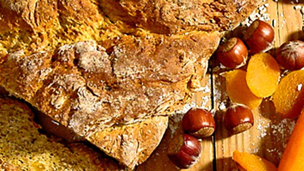 1. Raasta porkkana hienoksi, rouhi pähkinät ja pilko aprikoosit. Mittaa kulhoon kädenlämmin vesi ja sekoita siihen öljy, hiiva ja suola. Lisää porkkana, pähkinät ja aprikoosit. Työstä joukkoon jauhot, aloita vähäisellä määrällä. Vaivaa voimakkaasti 5 minuuttia koneella tai 10 minuuttia käsivoimin. Kohota peitettynä kaksinkertaiseksi kulhossa, noin 40 minuuttia.