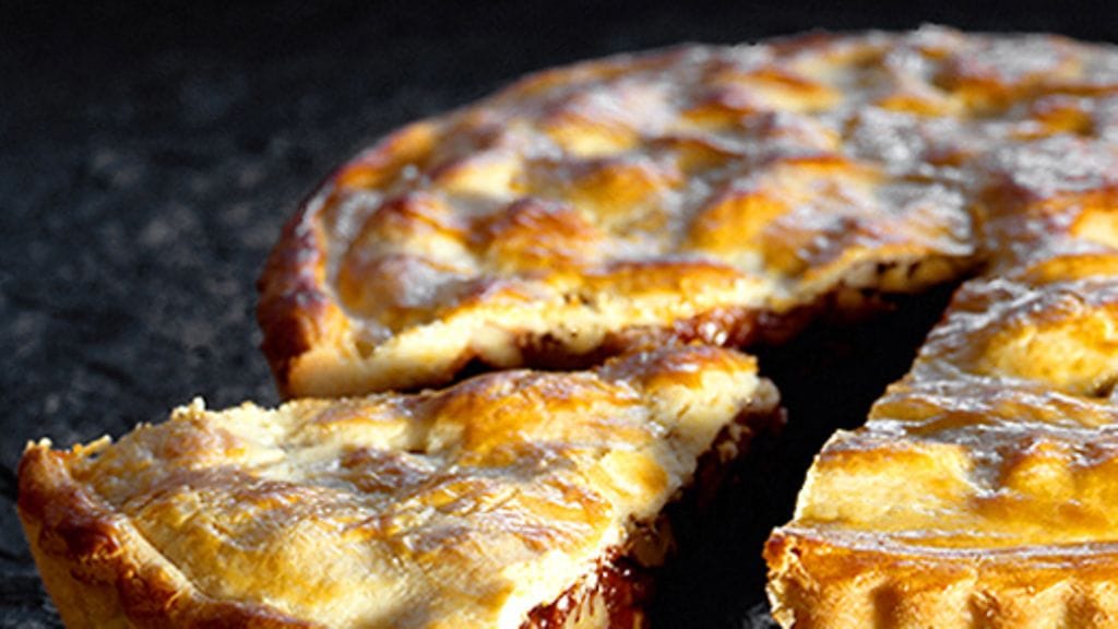 1. Nypi jauhot, voi, sokeri ja keltuainen taikinaksi, säästä valkuainen penslaukseen. Työstä nopeasti taikinaksi, ota 1/3 taikinasta sivuun kanneksi ja painele loput taikinasta piirasvuokaan. Laita vuoka jääkaappiin 30 minuutiksi.