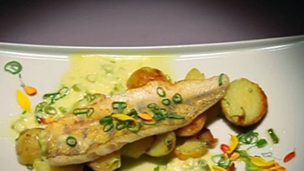Perunat: Keitä perunat suolavedessä melkein kypsiksi. Pilko ja paista kullanruskeiksi. Lopuksi lisää voi, joka saa hieman ruskistua ja pilkotut sipulinvarret. Lisää hiukan sitruunamehua tuomaan raikkautta.