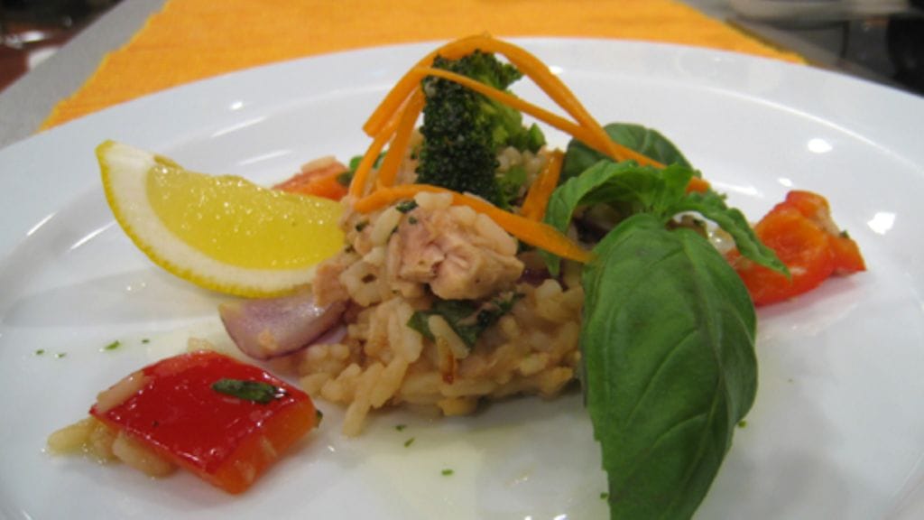 Pilko sipuli, paprika ja parsakaali parin sentin paloiksi. Kuumenna pannulla öljyä ja paista paloja siinä niin, että ne saavat öljyä kaikille pinnoilleen. Lisää riisi ja soija ja jatka paistamista niin, että riisi kuumenee. Kumoa tonnikalasäilykkeet riisin joukkoon ja kuumenna taas. Mausta reilulla määrällä leikattua basilikaa ja lorauksella basilikaoliiviöljyä.