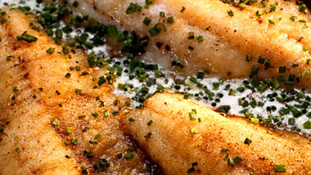 3. Nosta ahvenfileet takaisin pannulle, anna lämmetä. Sirottele päälle hienonnettua ruohosipulia. Tarjoile heti suoraan paistinpannusta vastakeitettyjen uusien perunoiden kanssa.